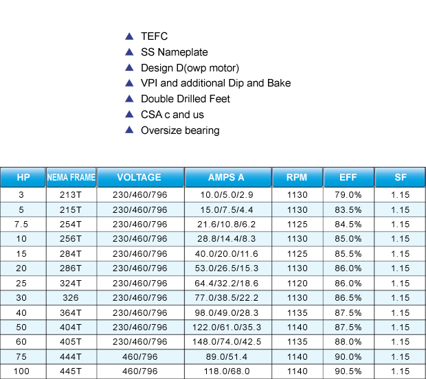 • Design D nema motor (owp motor)