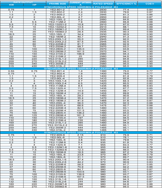 IE2 efficiency of IEC60034-30 or EFF1 Inveter duty IP54 CE compliance mounting dimension same as Y,Y2 series easy to replace Y,Y2 VPI plus one dip and bake(F class). Low temperatme rise. Low vibration and Low noise oversized bearing thermal protect on winding and bearing upon requirement
